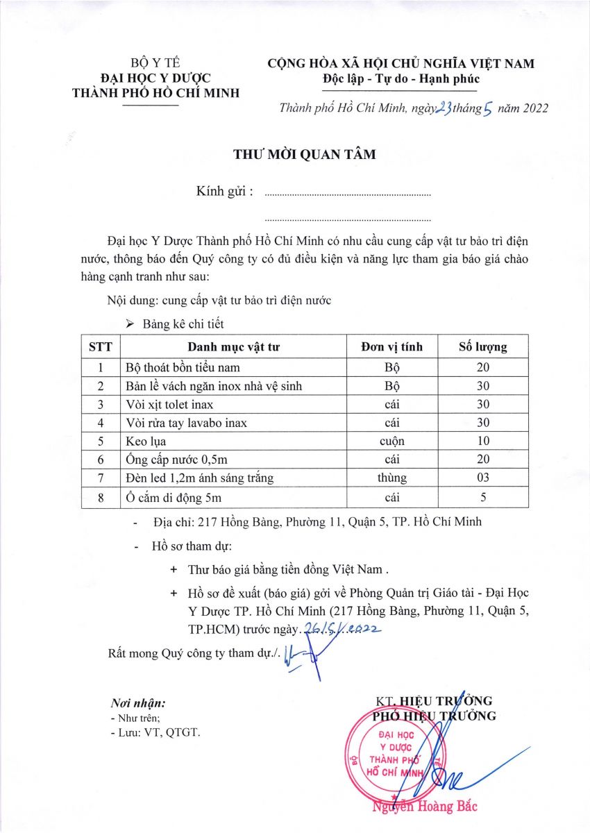 Thư mời quan tâm: "Cung cấp vật tư bảo trì điện nước" - vx88 esball TP.vx88m