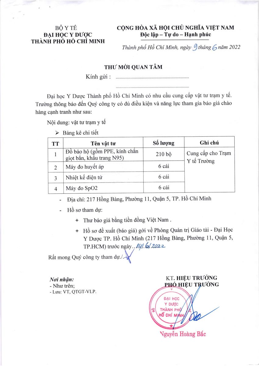 Thời gian nhận báo giá từ ngày 09/6/2022 đến ngày 14/6/2022