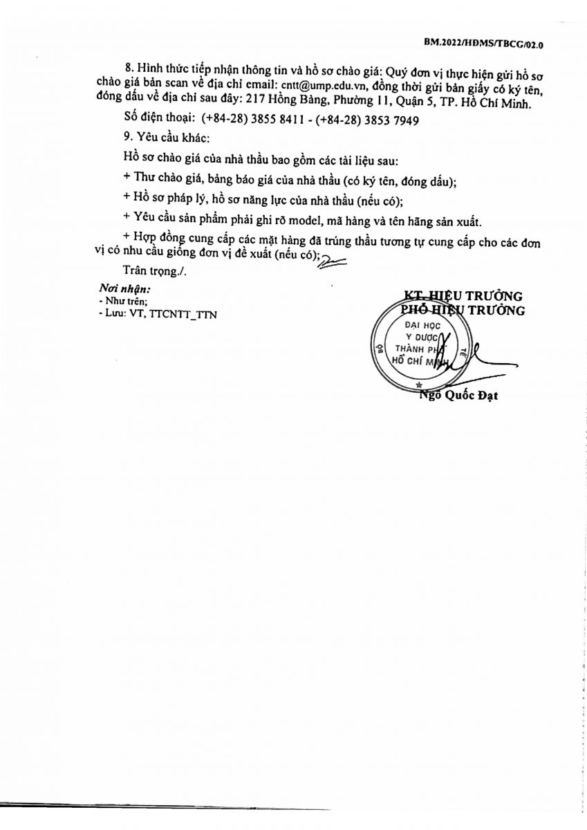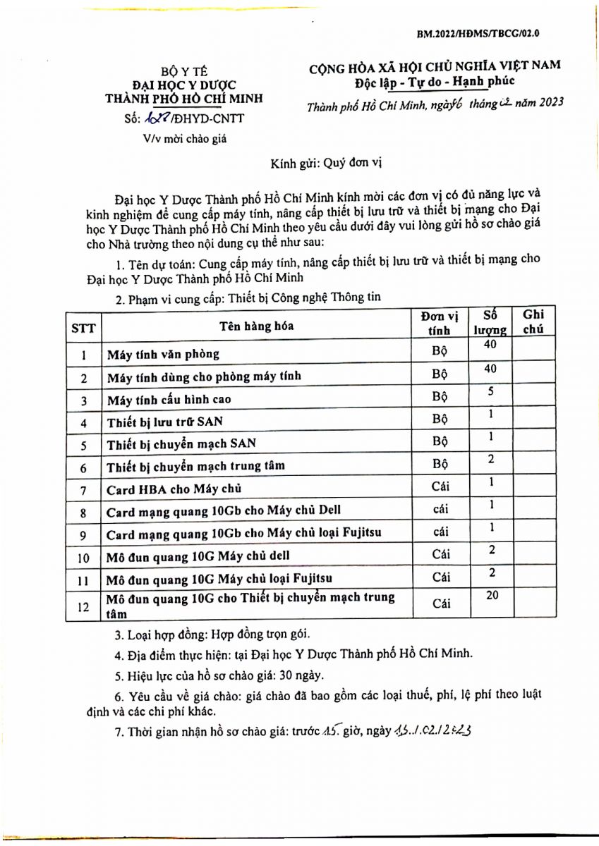 Thời gian nhận hồ sơ chào giá: từ ngày ra thông báo đến 15:00 ngày 13/02/2023