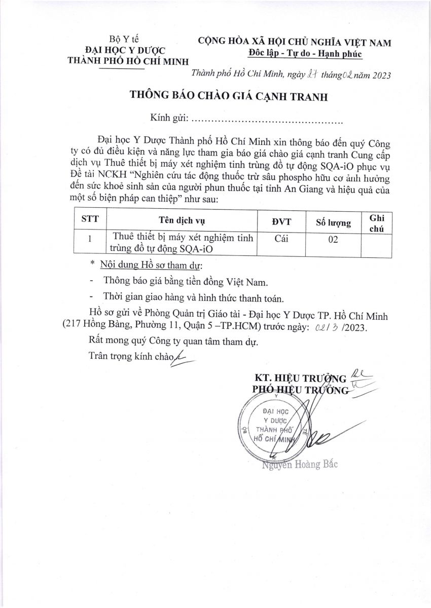 vx88 code chào giá cạnh tranh: "Cung cấp dịch vụ Thuê thiết bị máy xét nghiệm tinh trùng đồ tự động SQA-iO" phục vụ Đề tài NCKH Khoa Điều Dưỡng- vx88 esball Y dược TP.vx88m