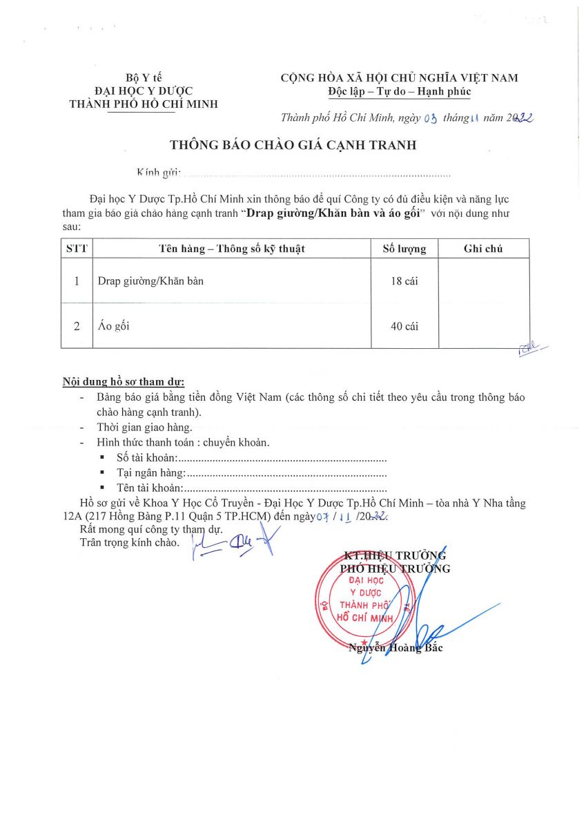 Thời gian nhận hồ sơ chào giá: từ ngày ra thông báo đến ngày 07/11/2022