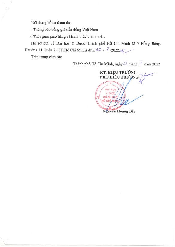 Thời gian nhận báo giá: từ ngày ra thông báo đến ngày 12/8/2022
