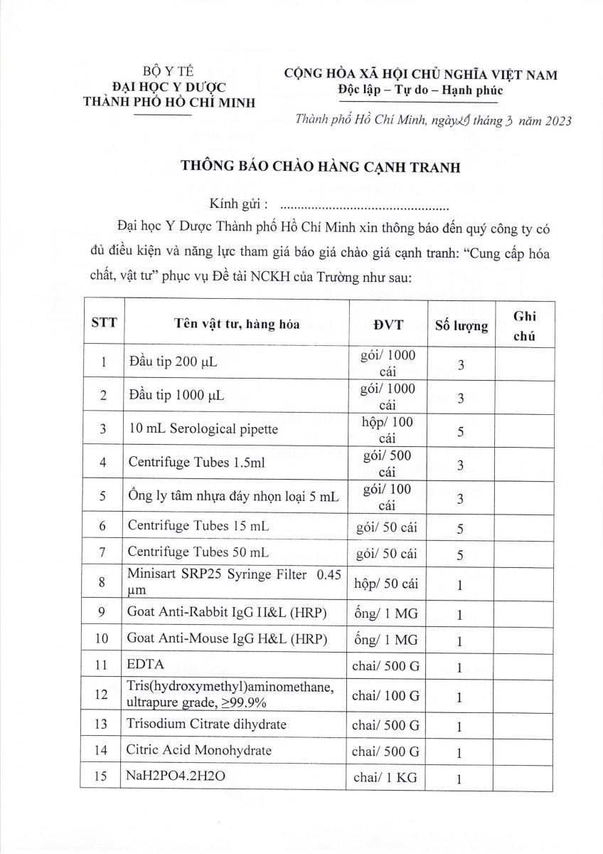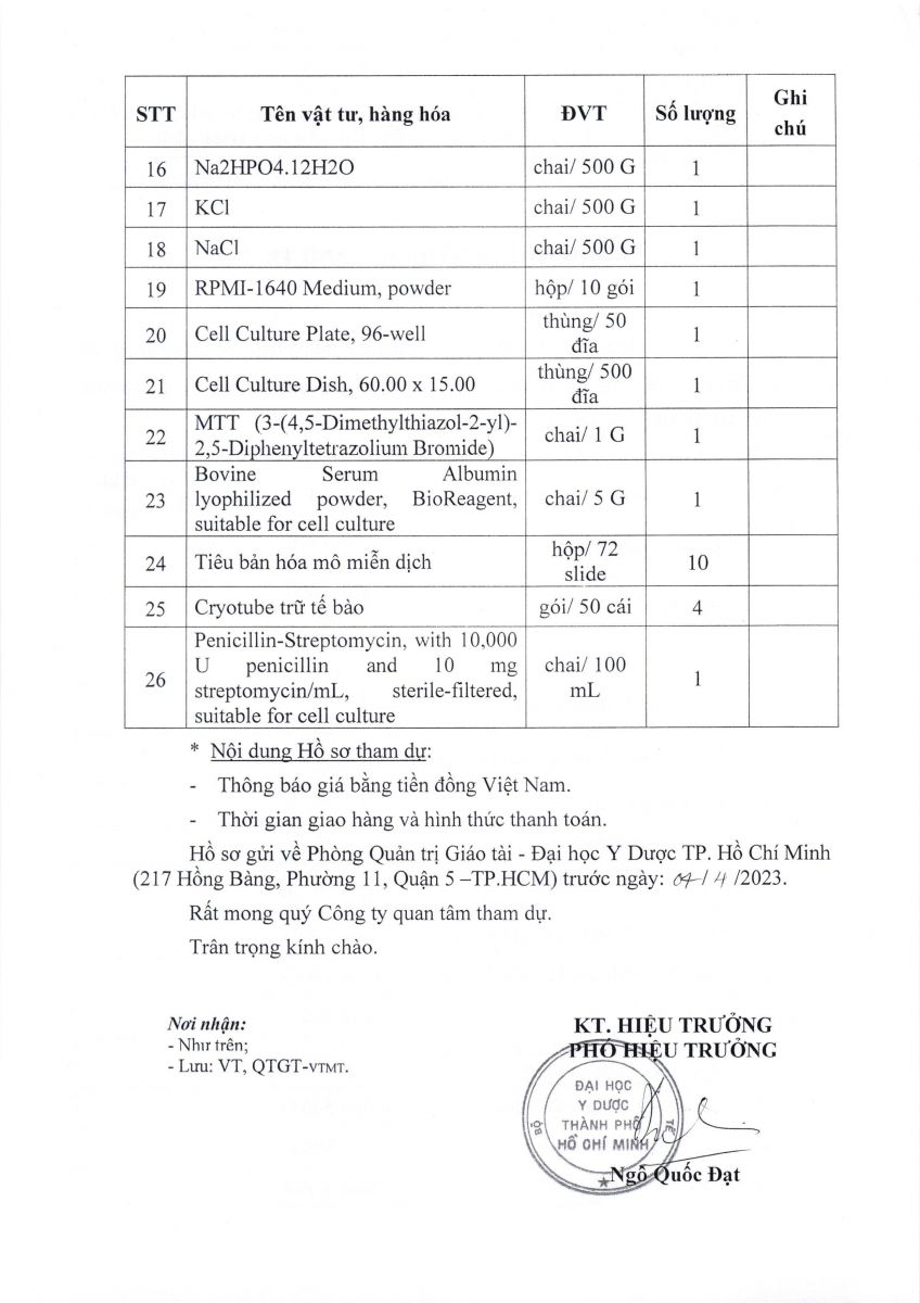 Thời gian nhận hồ sơ chào giá: từ ngày ra thông báo đến trước ngày 04/4/2023