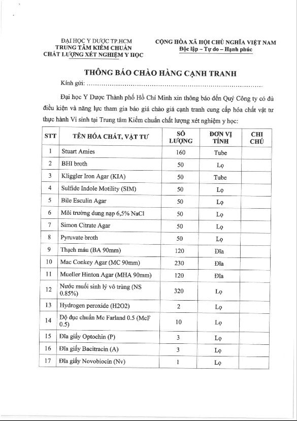 Thời gian nhận báo giá: từ ngày ra thông báo đến ngày 12/8/2022
