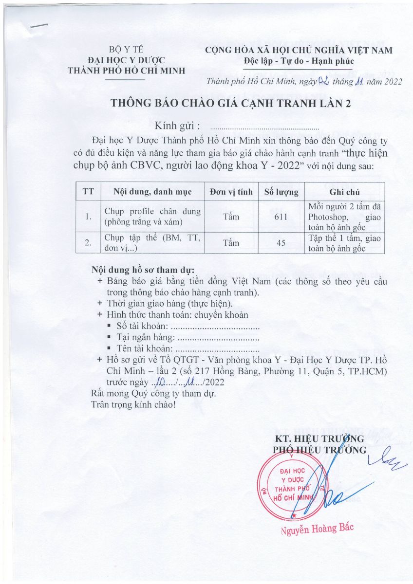 Thời gian nhận hồ sơ chào giá: từ ngày ra thông báo đến ngày 10/11/2022