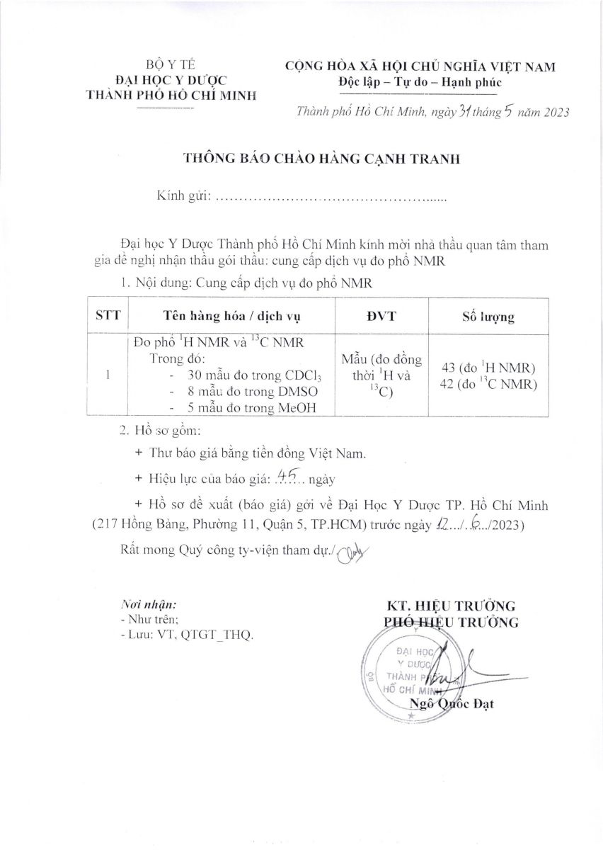 Thời gian nhận hồ sơ chào giá: từ ngày ra thông báo đến trước ngày 12/6/2023
