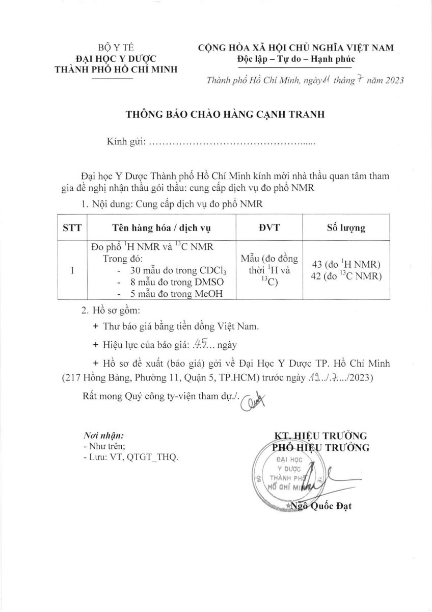 Thời gian nhận hồ sơ chào giá: từ ngày ra thông báo đến trước ngày 19/7/2023