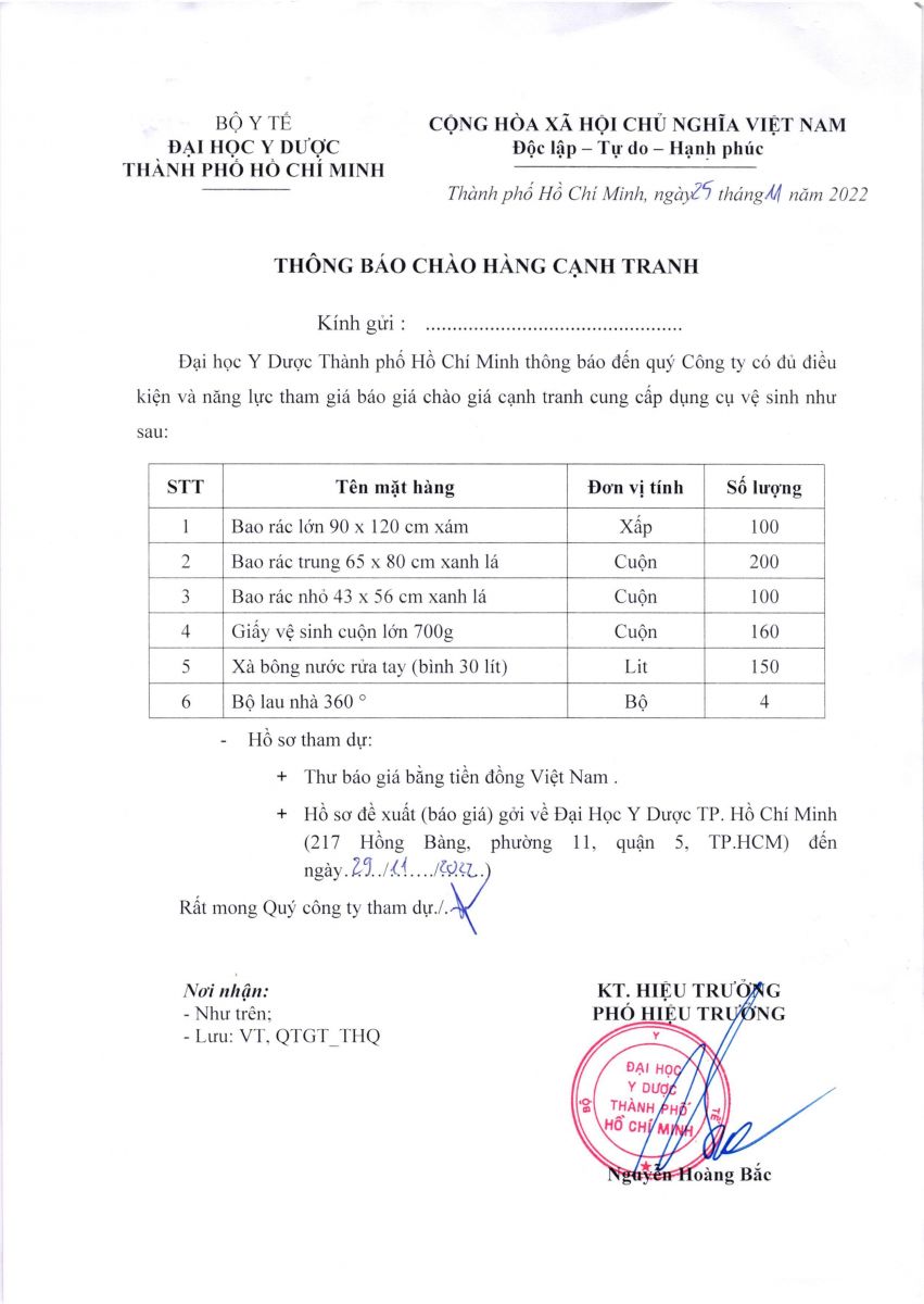 Thời gian nhận hồ sơ chào giá: từ ngày ra thông báo đến ngày 29/11/2022