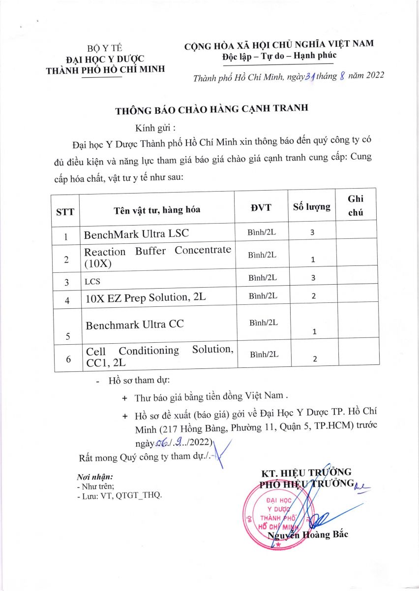 Thời gian nhận báo giá: từ ngày ra thông báo đến ngày 06/9/2022