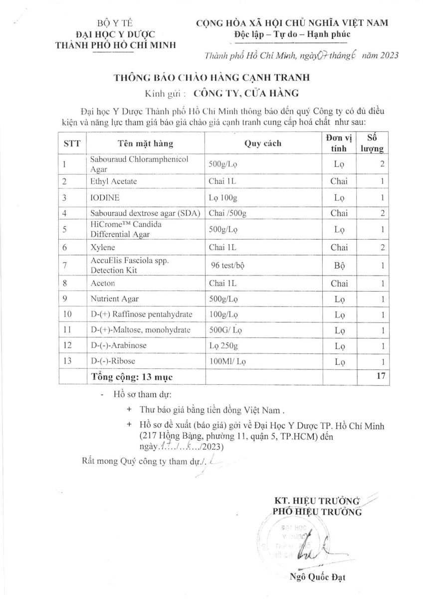 Thời gian nhận hồ sơ chào giá: từ ngày ra thông báo đến ngày 17/6/2023