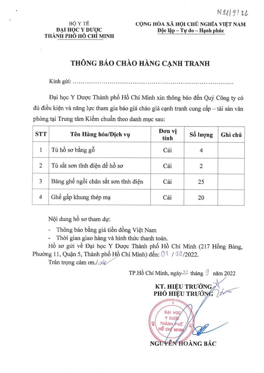 Thời gian nhận hồ sơ chào giá: từ ngày ra thông báo đến ngày 03/10/2022