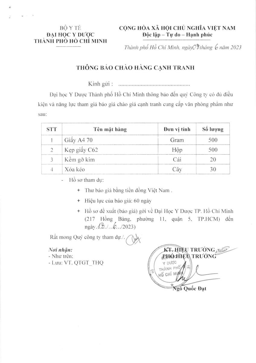 Thời gian nhận hồ sơ chào giá: từ ngày ra thông báo đến ngày 18/6/2023