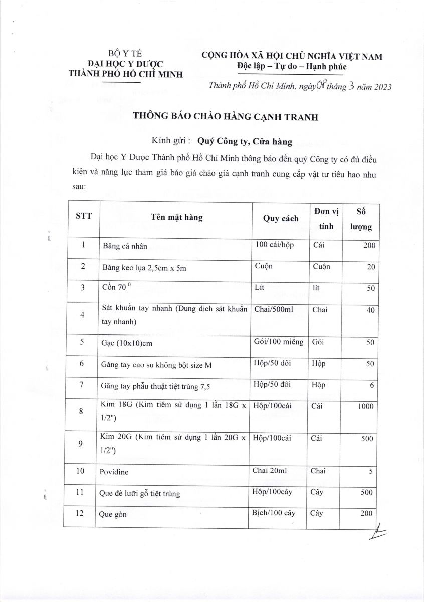 Thời gian nhận hồ sơ chào giá: từ ngày ra thông báo đến trước ngày 13/3/2023