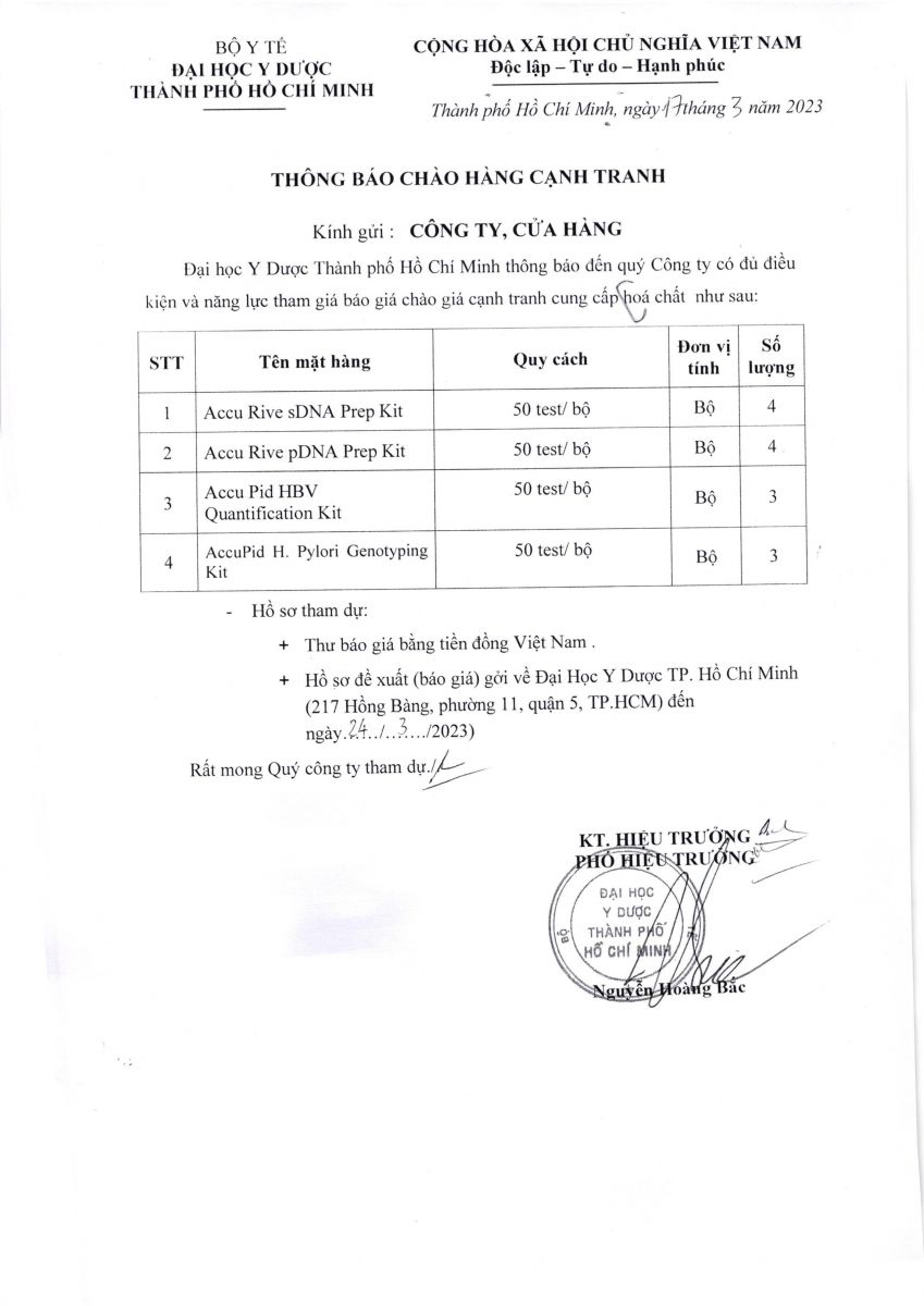 Thời gian nhận hồ sơ chào giá: từ ngày ra thông báo đến trước ngày 24/3/2023