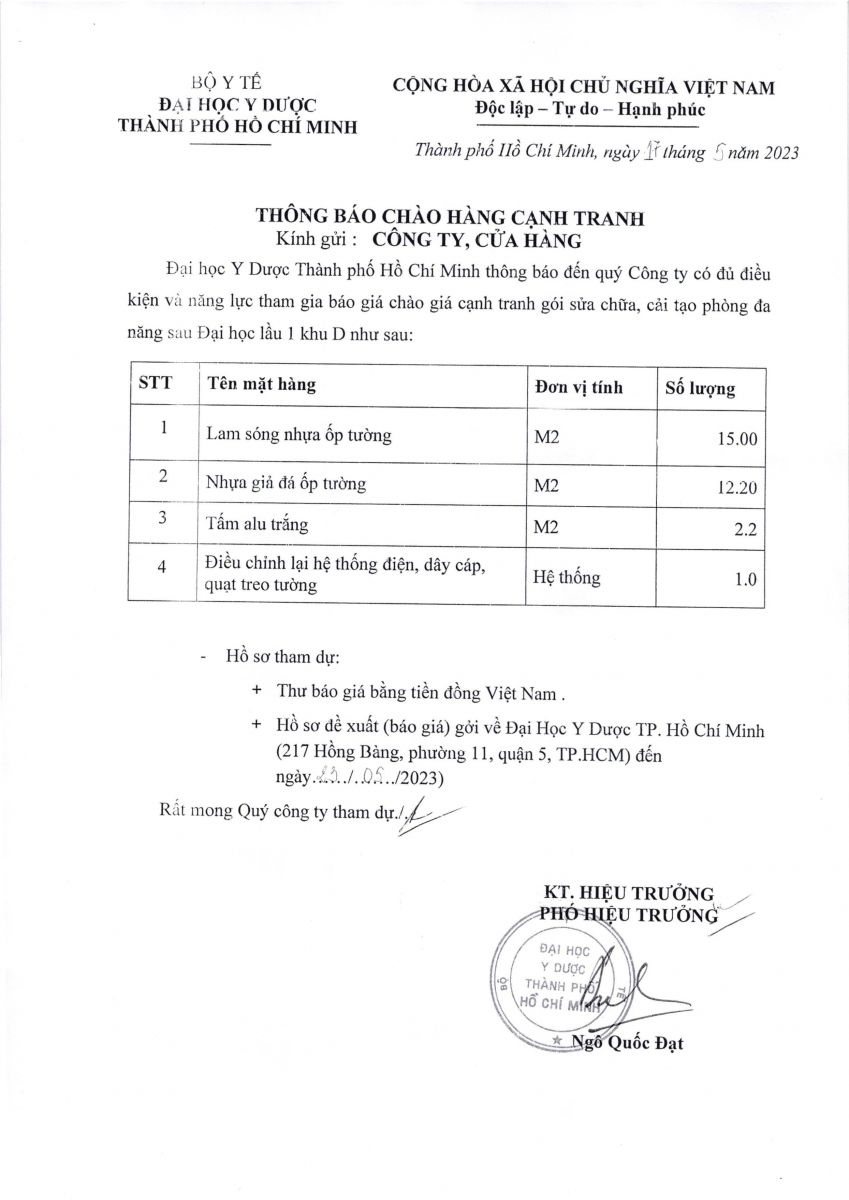 Thời gian nhận hồ sơ chào giá: từ ngày ra thông báo đến ngày 23/5/2023