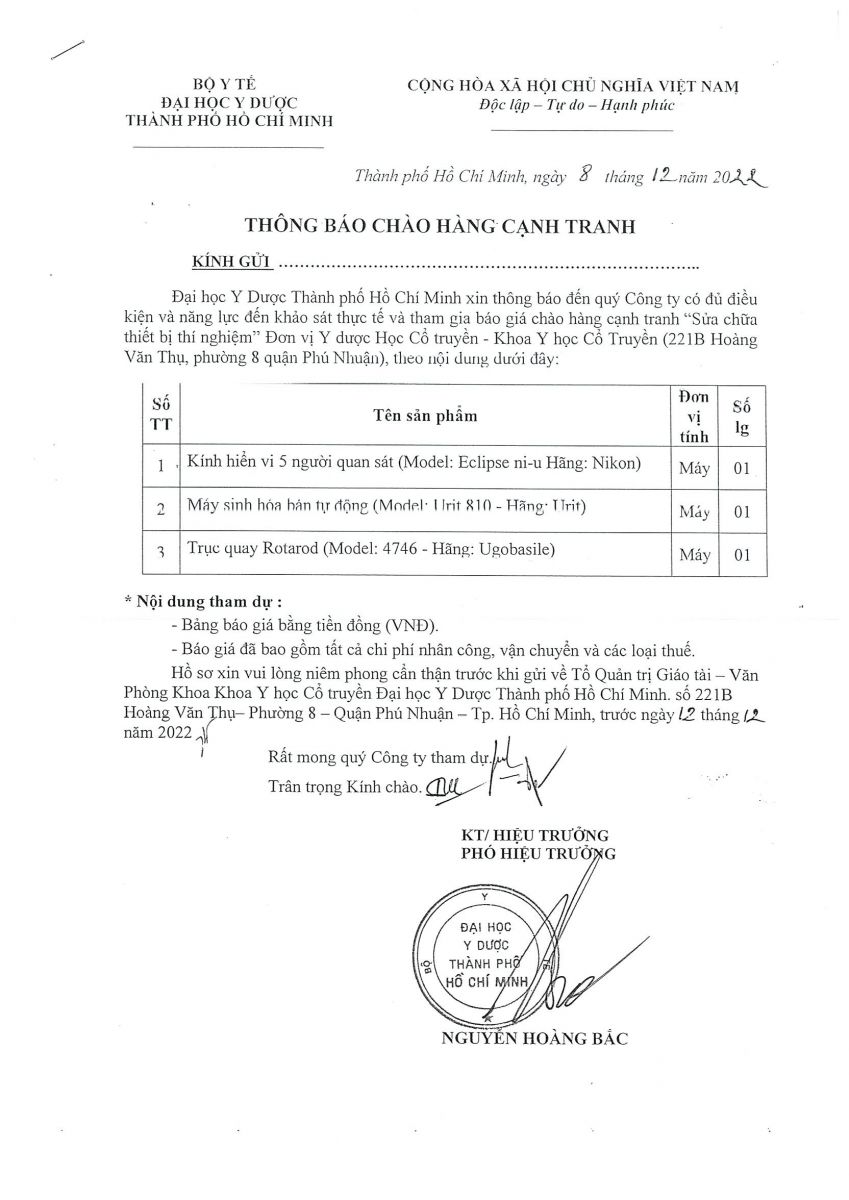 Thời gian nhận hồ sơ chào giá: từ ngày ra thông báo đến ngày 12/12/2022