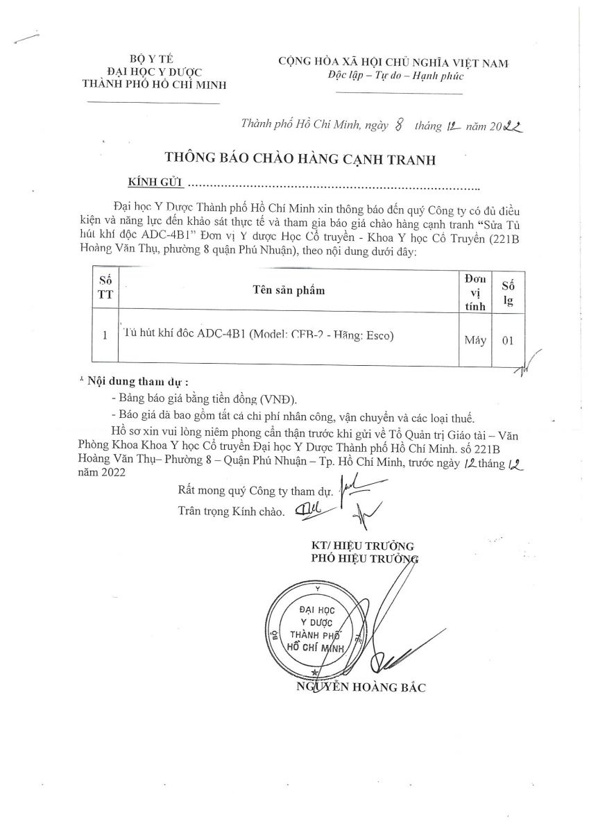 Thời gian nhận hồ sơ chào giá: từ ngày ra thông báo đến ngày 12/12/2022