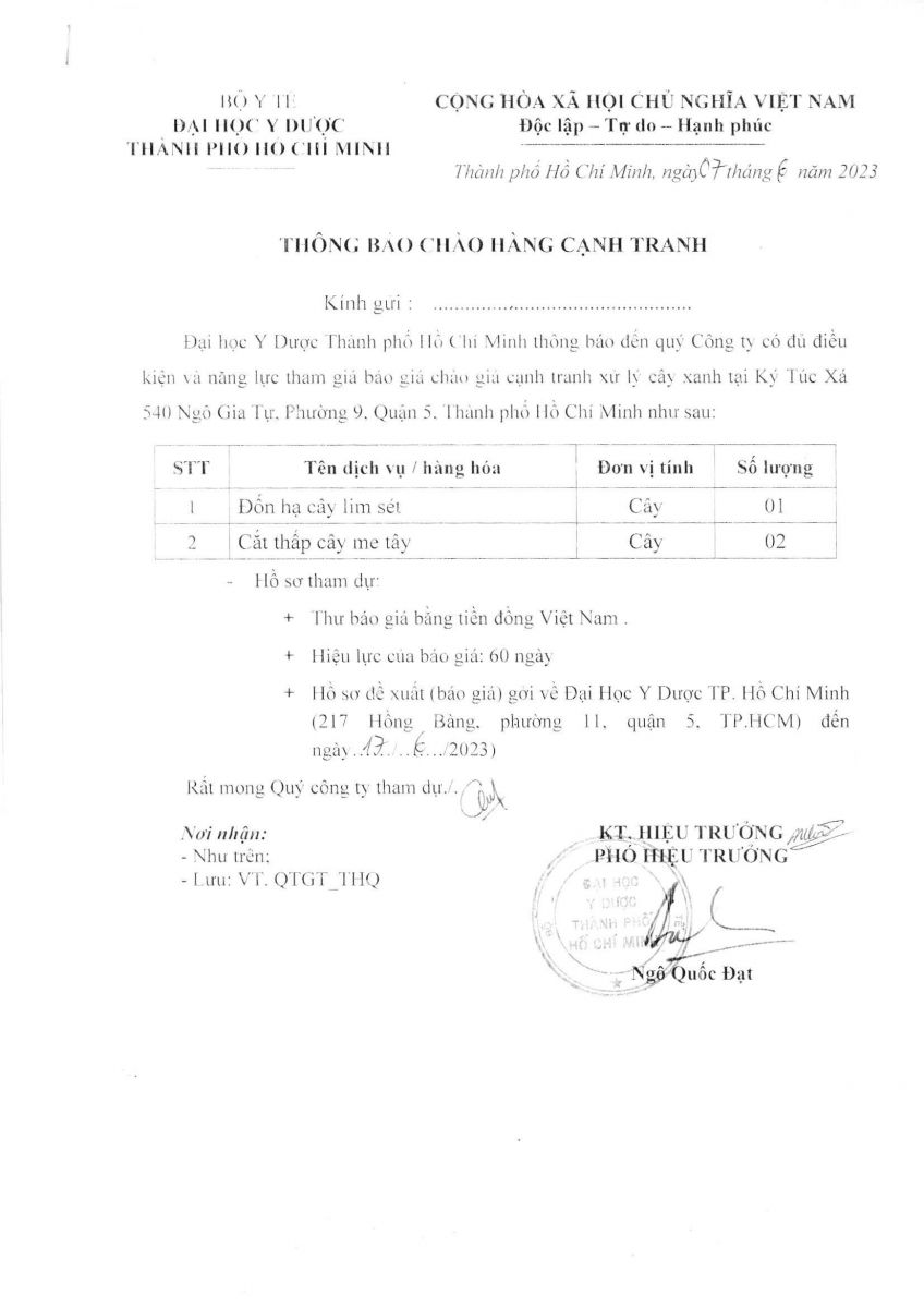 Thời gian nhận hồ sơ chào giá: từ ngày ra thông báo đến ngày 17/6/2023