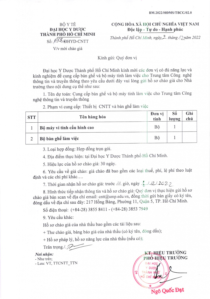Thời gian nhận hồ sơ chào giá: từ ngày ra thông báo đến trước 11 giờ 00' ngày 06/12/2022