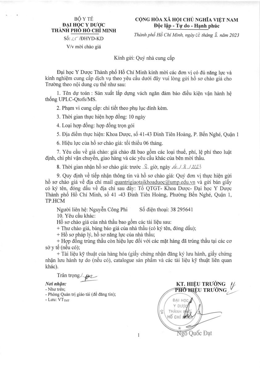 Thời gian nhận hồ sơ chào giá: từ ngày ra thông báo đến trước 8g00 ngày 16/8/2023