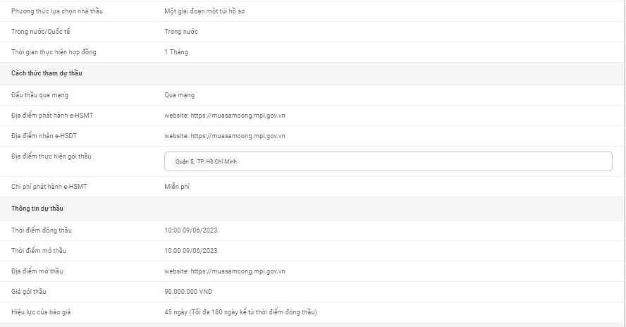 Nguồn kinh phí: Nguồn chi hoạt động thường xuyên Thời gian đóng/mở thầu: 10 giờ 00 ngày 09/6/2023