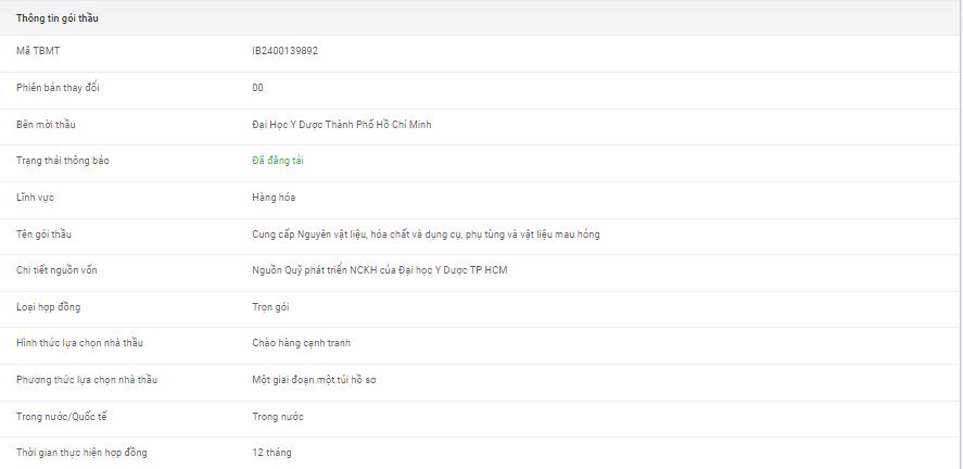 Nguồn kinh phí: Nguồn Quỹ phát triển NCKH của ĐHYD TPHCM Thời gian đóng/mở thầu: 10 giờ 00 ngày 25/6/2024