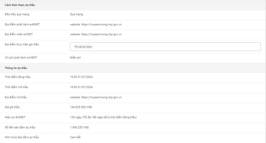 Thời gian đóng/mở thầu: 10 giờ 00 ngày 01/7/2024