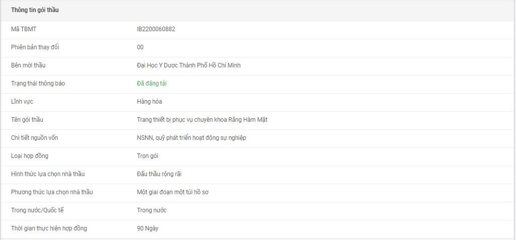 vx88 code mời thầu: Gói thầu "Trang thiết bị phục vụ chuyên khoa Răng Hàm Mặt" - vx88 esball TP.vx88m
