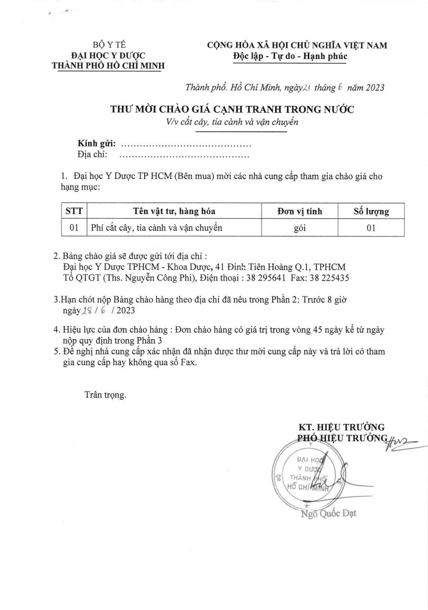 Thời gian nhận hồ sơ chào giá: từ ngày ra thông báo đến trước 8g 00 ngày 28/6/2023