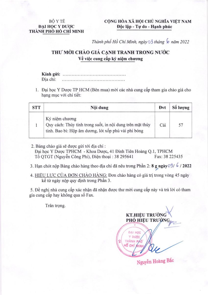 Hạn chót nhận Bảng chào giá đến 8 giờ 00' ngày 09/6/2022