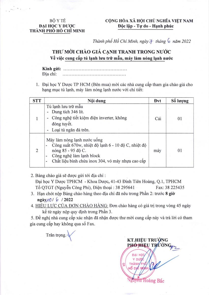 Thời gian nhận báo giá từ ngày 07/6/2022 đến ngày 10/6/2022