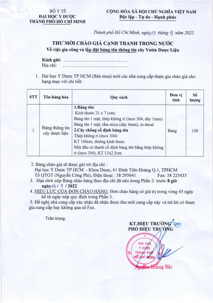 Thời gian nhận báo giá: từ ngày ra thông báo đến ngày 16/9/2022