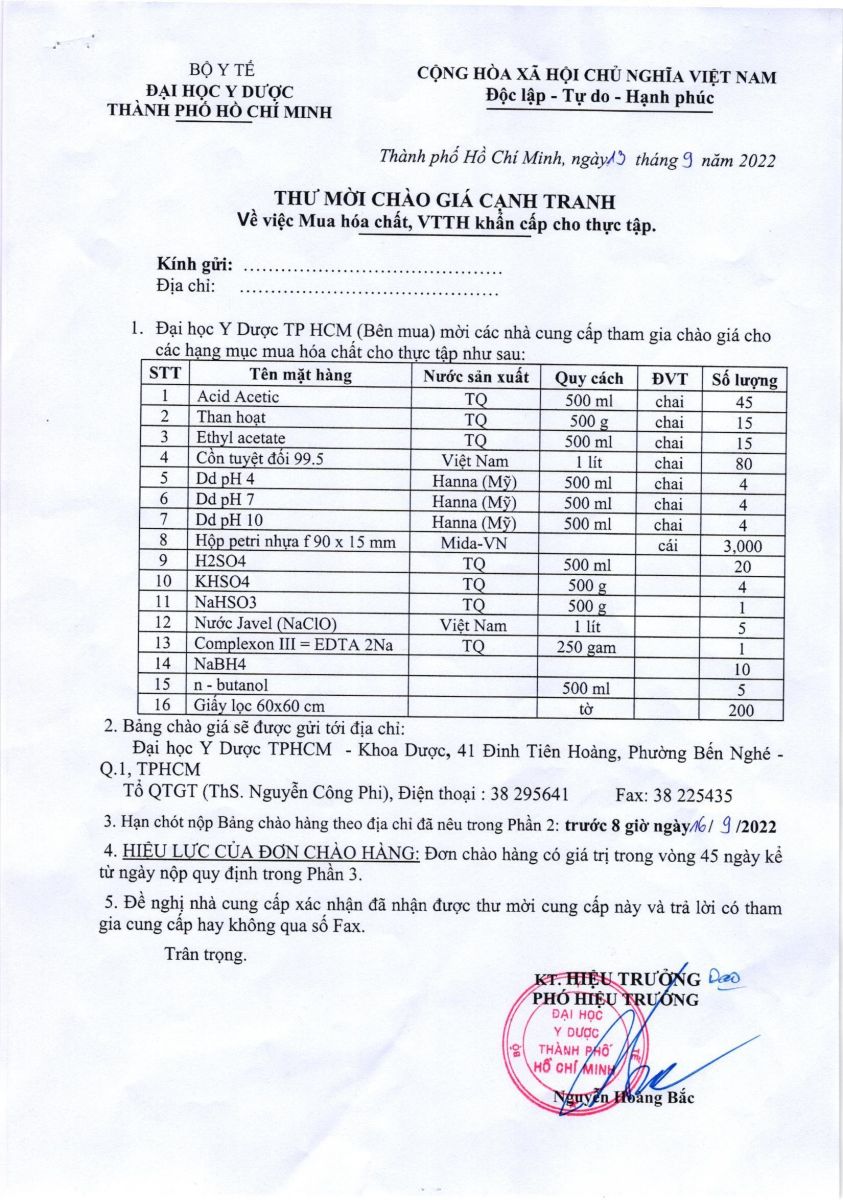 4. Thư mời chào giá cạnh tranh: "Mua hóa chất, vật tư khẩn cấp cho thực tập" Khoa Dược - vx88 esball vx88b
