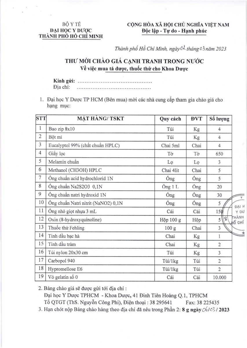Thời gian nhận hồ sơ chào giá: từ ngày ra thông báo đến trước 8g00 ngày 06/03/2023