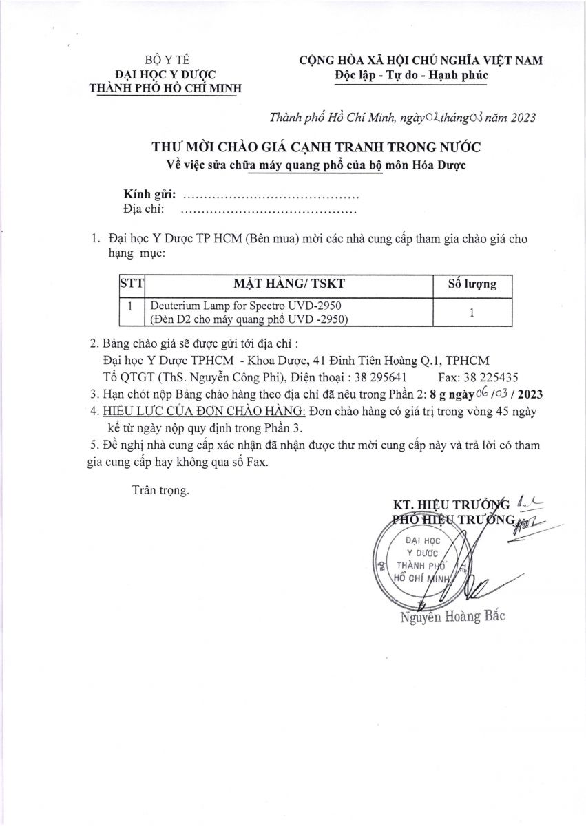 Thư mời chào giá cạnh tranh: "Sửa chữa máy quang phổ của BM Hóa Dược" - vx88 esball Y dược TP.vx88m