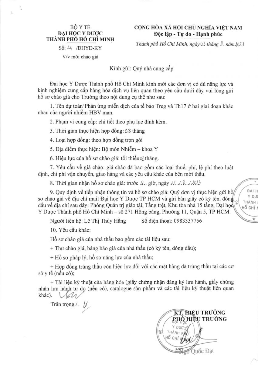 Thời gian nhận hồ sơ chào giá: từ ngày ra thông báo đến trước 8g 00 ngày 11/8/2023