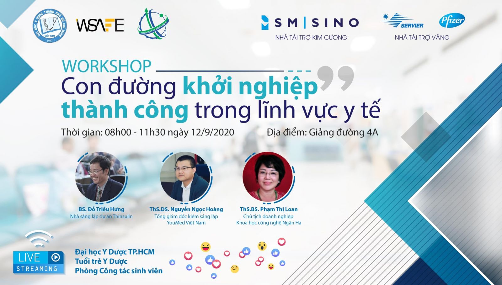 Buổi hội thảo được bắt đầu 8h00 - 11g30 ngày 12.9.2020 tại Giảng đường 4A - Đại học Y Dược TP. Hồ Chí Minh và livestream trên fanpage Đại học Y Dược TP. Hồ Chí Minh.