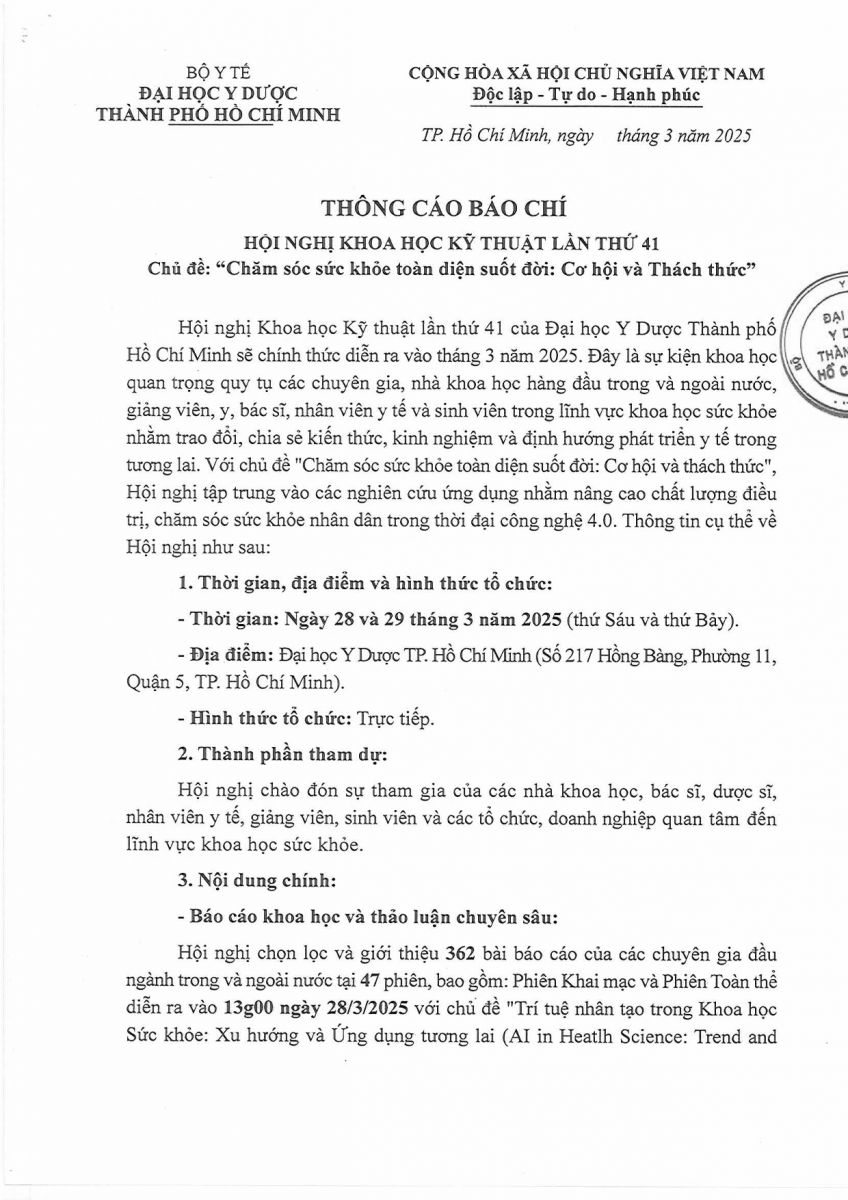 Thông cáo báo chí Hội nghị Khoa học Kỹ thuật lần thứ 41
