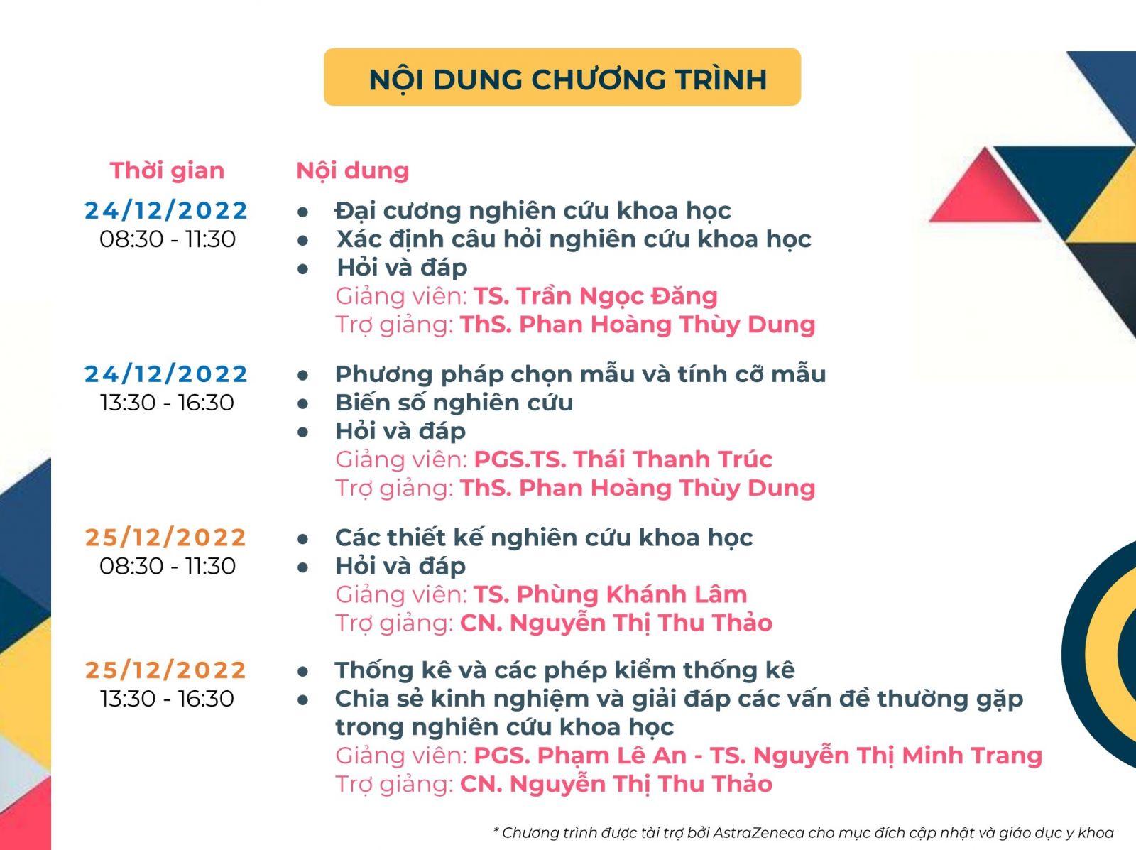 Ngày 24-25/12/2022 vừa qua, Trung tâm Hỗ trợ dự án và Đổi mới sáng tạo (GIC), Trung tâm Đào tạo nhân lực y tế theo nhu cầu xã hội, Phòng vx88b cùng với sự tài trợ của Công ty TNHH AstraZeneca Việt Nam tổ chức khóa học với chủ đề: