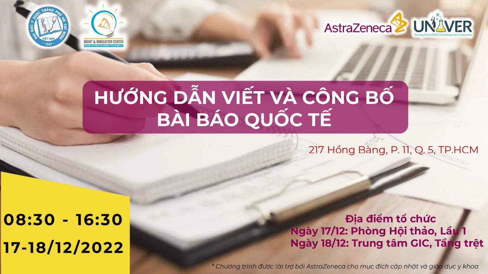 Cuối tuần vừa rồi, ngày 17-18/12/2022, Trung tâm Hỗ trợ dự án và Đổi mới sáng tạo (GIC) kết hợp cùng Trung tâm Đào tạo nhân lực y tế theo nhu cầu xã hội, Phòng vx88b cùng với sự tài trợ của Công ty TNHH AstraZeneca Việt Nam tổ chức khóa học trực tiếp với chủ đề: “HƯỚNG DẪN VIẾT VÀ CÔNG BỐ BÀI BÁO QUỐC TẾ”.