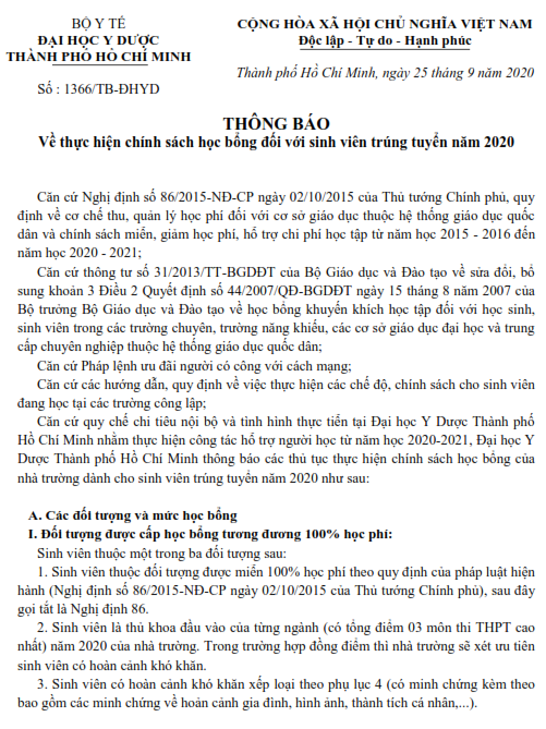 vx88 esball Thành phố Hồ Chí Minh thông báo về "Mức thu học phí năm học 2020 - 2021 áp dụng cho đối tượng trúng tuyển năm 2020" và "Chính sách học bổng đối với sinh viên trúng tuyển năm 2020" như sau: