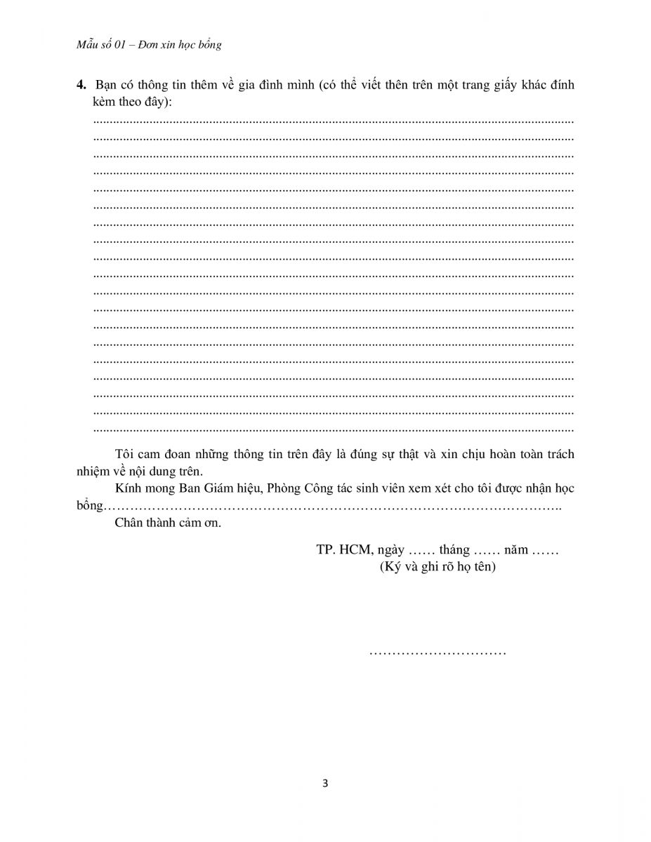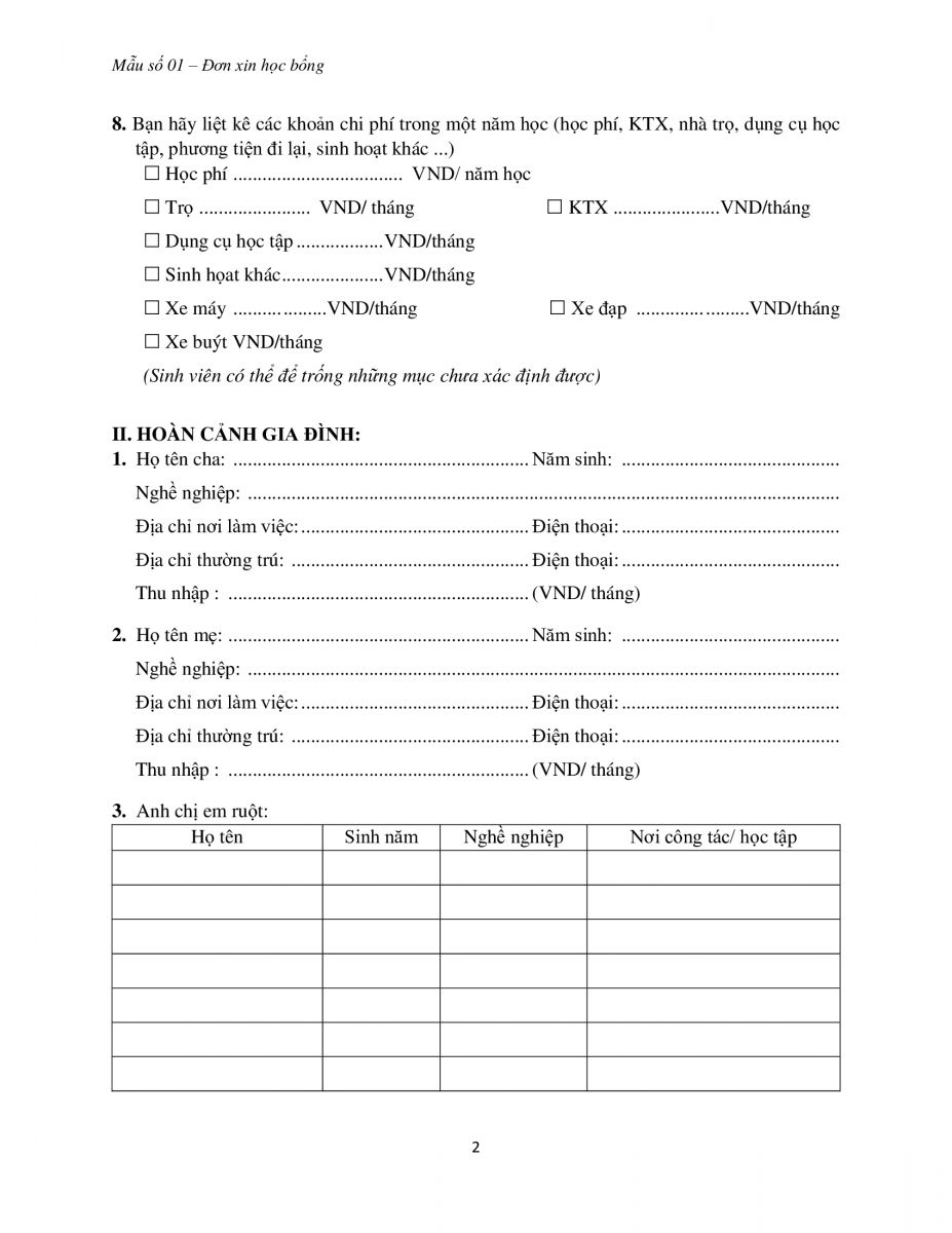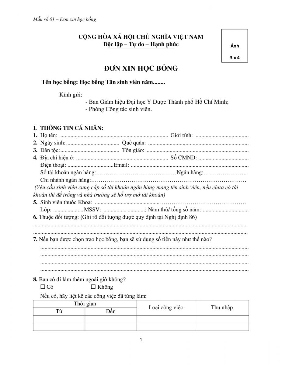Mẫu Đơn xin học bổng cho Tân Sinh viên (Tải File)