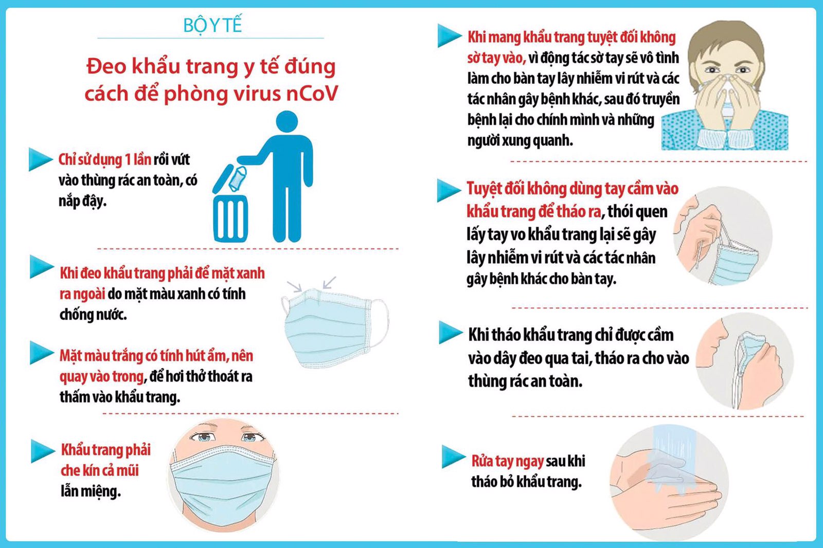 Tham khảo thêm đeo khẩu trang đúng cách và rửa tay sạch để bảo bệ bản thân và người xung quanh khỏi nguy cơ mắc chủng virus Conona mới.