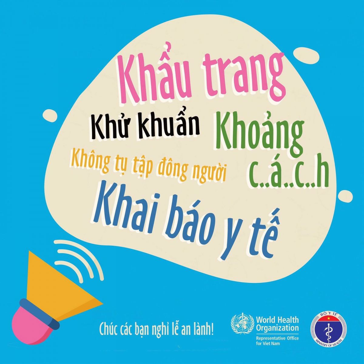 3. Thực hiện tốt Khuyến cáo 5K: KHẨU TRANG - KHỬ KHUẨN - KHOẢNG CÁCH - KHÔNG TỤ TẬP - KHAI BÁO Y TẾ để phòng, chống dịch COVID-19.