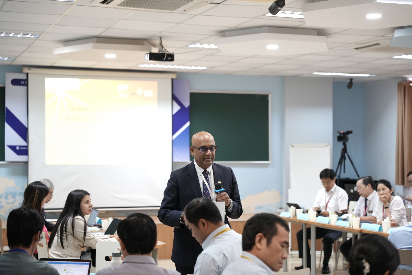 Chương trình hội thảo trong hai ngày đã được thiết kế công phu, bao gồm các bài giảng, minh họa công nghệ và hoạt động tương tác song song, trải dài từ ứng dụng cơ bản đến thực tiễn của AI trong giảng dạy và lượng giá y khoa. Các bài trình bày khai mạc, do GS. Dujeepa Samarasekera đảm trách, giới thiệu về nền tảng AI sinh tạo (Generative AI), mô hình ngôn ngữ lớn (LLMs) và nguyên lý cơ bản của máy học. Người tham dự được hướng dẫn kỹ thuật “prompt engineering” để khai thác khả năng tạo tình huống bệnh nhân mô phỏng hoặc soạn câu hỏi lâm sàng chỉ trong vài giây. PGS. Nathasha Luke sau đó đưa mọi người tìm hiểu sâu về phương pháp cũng như các khung mẫu về khía cạnh phát triển AI, minh họa cách liên kết công cụ AI với vx88b học tập cụ thể, chẳng hạn cải thiện tư duy chẩn đoán hoặc tạo lộ trình khắc phục cá nhân. PGS. Jillian Yeo trình bày về hệ thống lượng giá tự động, bao gồm chấm OSCE bằng AI và thuật toán chấm bài luận, giúp thu thập dữ liệu phân tích đáp án của sinh viên. PGS. Koh Dow Rhoon hướng dẫn thực hành “tinh chỉnh prompt” để đảm bảo nội dung AI tạo ra luôn chính xác về lâm sàng và phù hợp về mặt sư phạm. TS. Lee Shuh Shing đánh giá xu hướng nghiên cứu quốc tế mới nhất về AI trong giáo dục y khoa, đồng thời giới thiệu các khung đạo đức đang nổi lên. Mỗi bài trình bày đều nhấn mạnh không chỉ khả năng công nghệ mà còn tầm quan trọng của bảo mật dữ liệu, công bằng thuật toán và sự giám sát của giảng viên để duy trì tính nghiêm túc học thuật. Thông qua việc minh họa các ví dụ thực tiễn từ ngân hàng câu hỏi AI đến hệ thống dạy kèm thông minh, người tham dự càng tự tin hơn về cách triển khai, đánh giá và mở rộng công nghệ này tại ĐHYD TPHCM cũng như các trường đối tác.