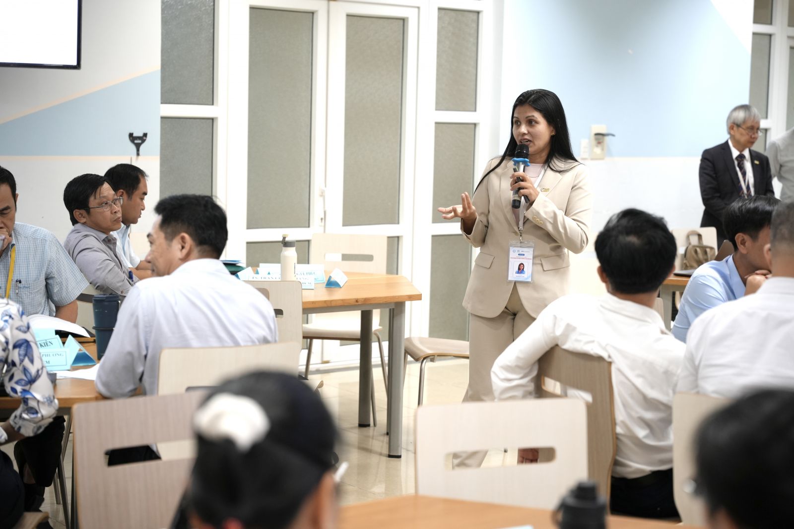 TS. Nguyễn Thị Minh Tân – Phòng Đảm bảo chất lượng giáo dục và Khảo thí - đảm nhiệm vai trò phiên dịch chính thức trong suốt hội thảo, bảo đảm mọi thành viên tham dự đều hiểu đầy đủ nội dung trình bày và các cuộc nhà cái vx88.