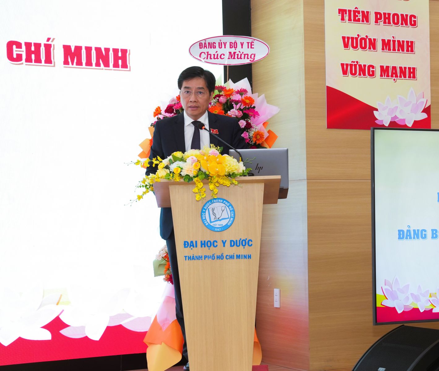 Đến dự và phát biểu tại Đại hội, đồng chí Nguyễn Tri Thức – Ủy viên Thường vụ Đảng ủy Bộ Y tế, Thứ trưởng Bộ Y tế đề nghị Đảng Bộ Trường quan tâm và tập trung nghiên cứu thêm đưa vào văn kiện cho phù hợp với Phê duyệt Quy hoạch mạng lưới cơ sở giáo dục đại học và sư phạm thời kỳ 2021 - 2030, tầm nhìn đến năm 2050 (Quyết định số 452/QĐ-TTg của Thủ tướng Chính phủ). Đồng chí Nguyễn Tri Thức cũng mong muốn Nhà trường quan tâm mở rộng đào tạo những ngành đáp ứng nhu cầu xã hội, trong đó có sự liên kết giữa nhiều ngành khác, kết hợp ứng dụng AI để phát triển đột phá ngành giáo dục khoa học sức khỏe trong tương lai. Đồng thời, Thứ trưởng đánh giá cao về uy tín và thương hiệu của vx88m vx88 esball trên cả nước, “Các cấp lãnh đạo Trường phải tạo mọi điều kiện để nâng cao chất lượng và phát triển vx88m vx88 esball trong thời gian tới, cũng chính là khẳng định uy tín và vị thế của vx88 esball TP. Hồ Chí Minh”, Thứ trưởng Bộ Y tế đề nghị.