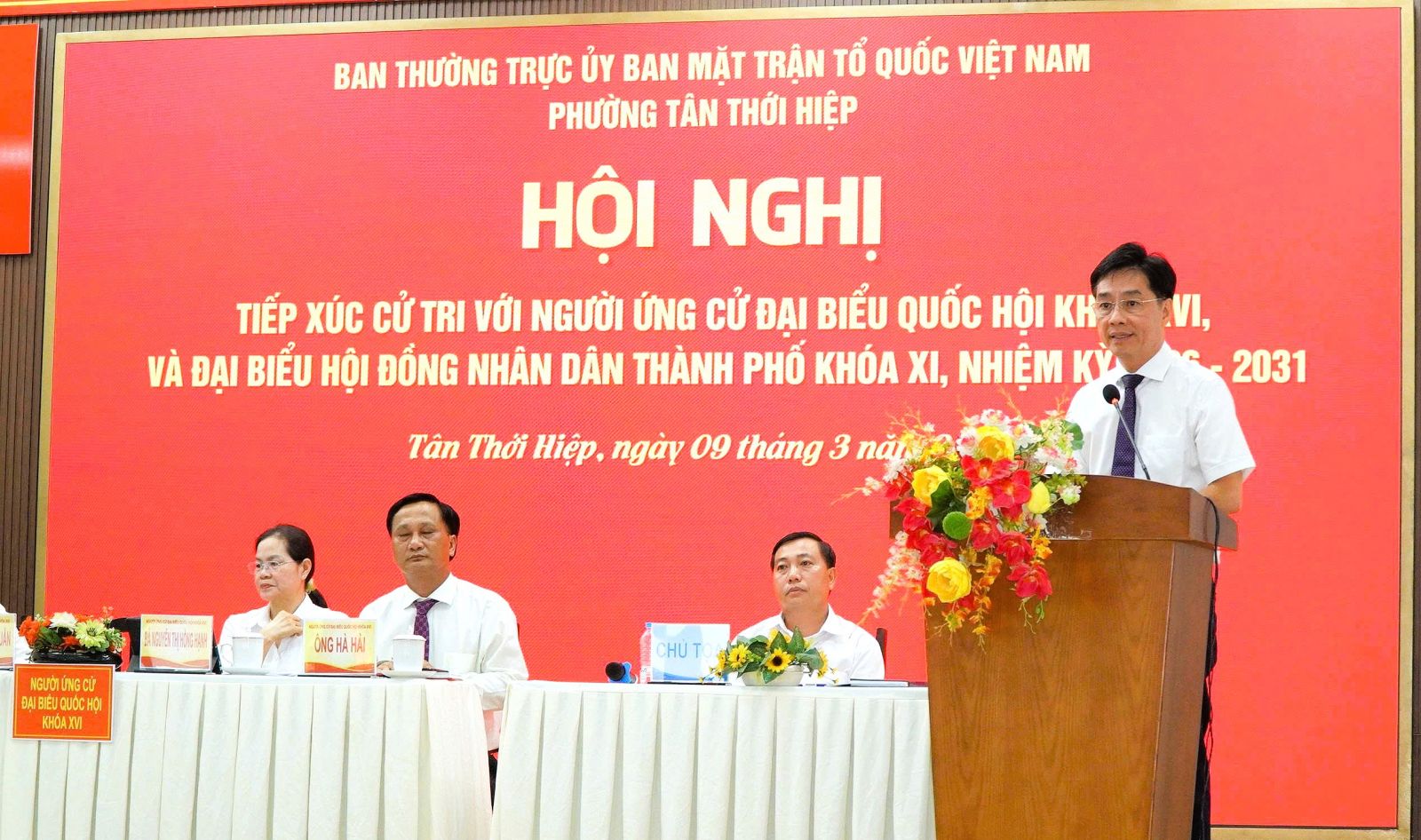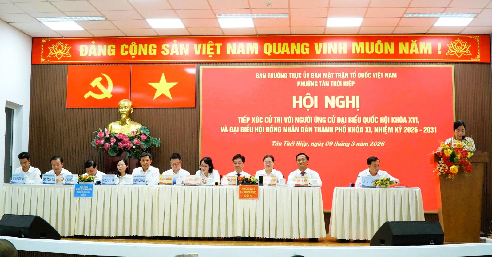 Chiều ngày 09/3/2026, Ban Thường trực Ủy ban MTTQ Việt Nam phường Tân Thới Hiệp tổ chức Hội nghị tiếp xúc cử tri với những người ứng cử đại biểu Quốc hội Khóa XVI và Hội đồng nhân dân Thành phố khóa XI, nhiệm kỳ 2026 - 2031. Hội nghị tiếp xúc cử tri là cơ hội quý báu để các ứng cử viên lắng nghe tiếng nói từ cơ sở, đồng thời trình bày những giải pháp đóng góp vào sự phát triển chung của địa phương.
