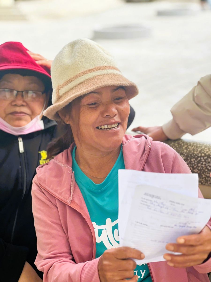 Có mặt rất sớm để đón đoàn đến khám thiện nguyện từ 06 giờ sáng, cô Ma Thứ (thôn Diom A, xã Lạc Xuân, huyện Đơn Dương, Lâm Đồng) tâm sự: “Tuổi cũng đã cao nên lo lắng cho sức khỏe lắm, tôi cũng mong muốn được vào Sài Gòn để khám bệnh một lần nhưng vì gia đình không có điều kiện, đường xá lại xa xôi. Nay có đoàn bác sĩ về khám cho bà con tôi rất vui, bỏ cả vườn cây chưa kịp tưới để đến sớm chờ được khám. Nghe các bác sĩ từ thành phố về tư vấn xong bản thân cũng thấy an tâm hơn nhiều”.