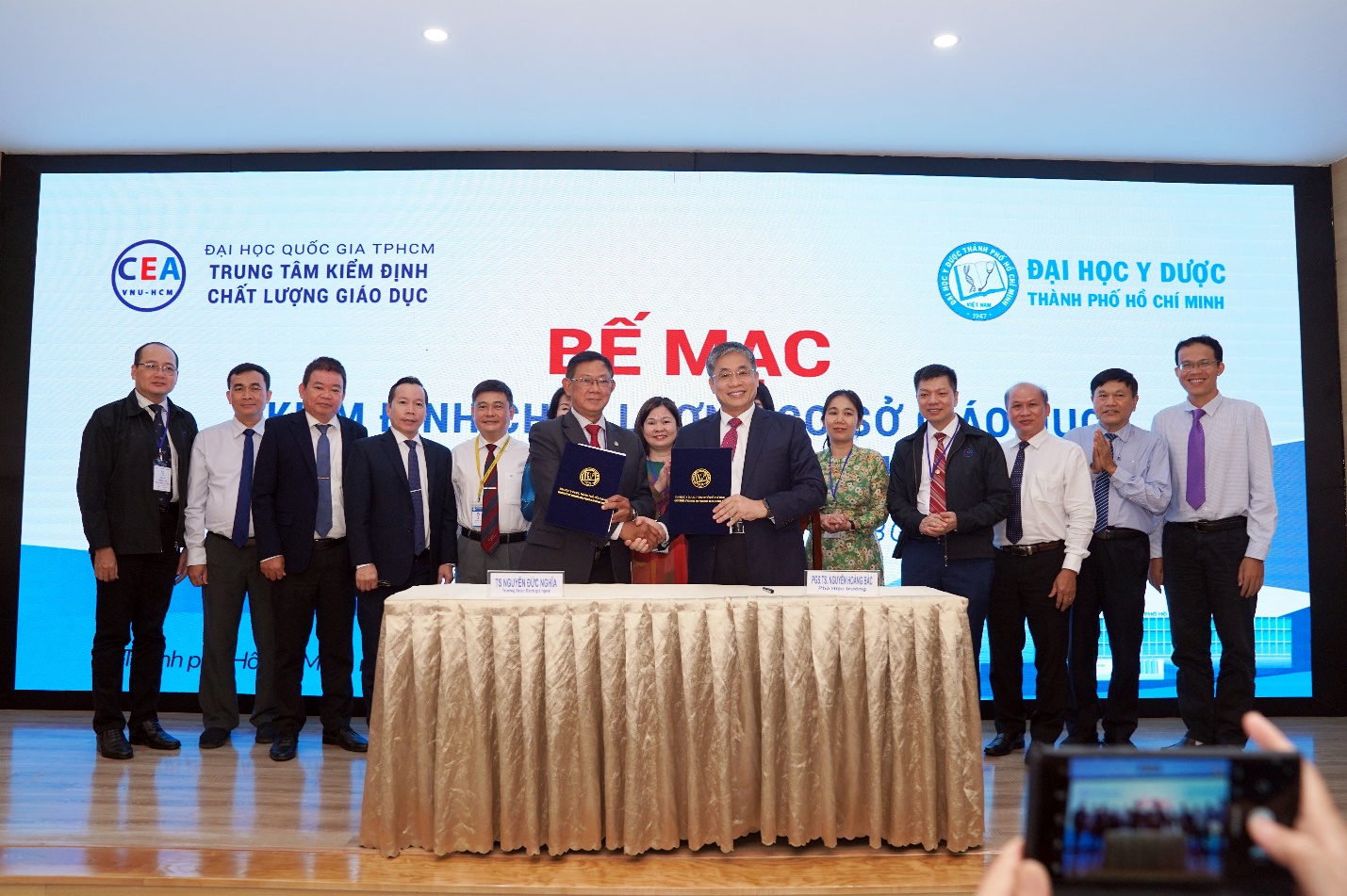 Kết thúc phiên Bế mạc, Trưởng Đoàn đánh giá ngoài, đại diện Trung tâm vx88m chất lượng giáo dục - vx88 esball Quốc gia thành phố Hồ Chí Minh và Phó Hiệu trưởng Trường vx88 esball Thành phố Hồ Chí Minh ký biên bản hoàn thành đợt khảo sát chính thức phục vụ đánh giá chất lượng Nhà trường.